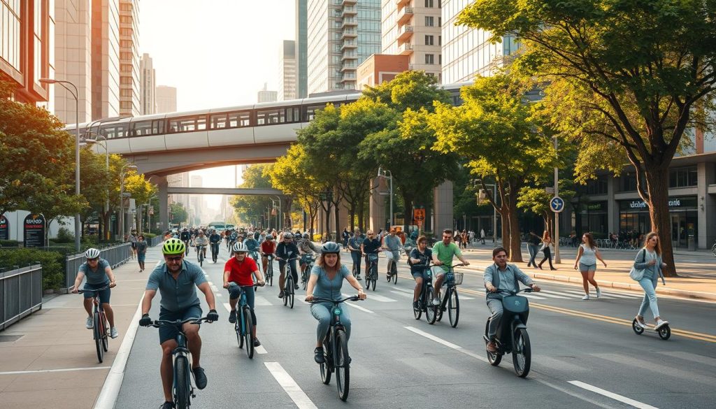 Urban planners are changing transportation infrastructure to support eco-friendly travel. Smart city technologies are making sustainable mobility easier. Cities like San Francisco and Copenhagen are leading with new transportation systems.