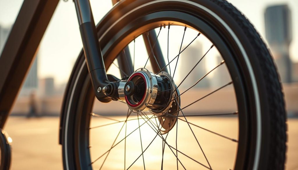 Hub motors are a simple choice for electric bikes. They fit right into the wheel, making riding smooth and efficient. They’re easy to take care of, which is great for those who want a hassle-free ride.